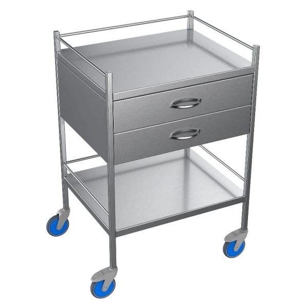 NIMBLE INSTRUMENT TROLLEY WITH RAILS, 2 DRAWERS & 1 LOWER SHELF