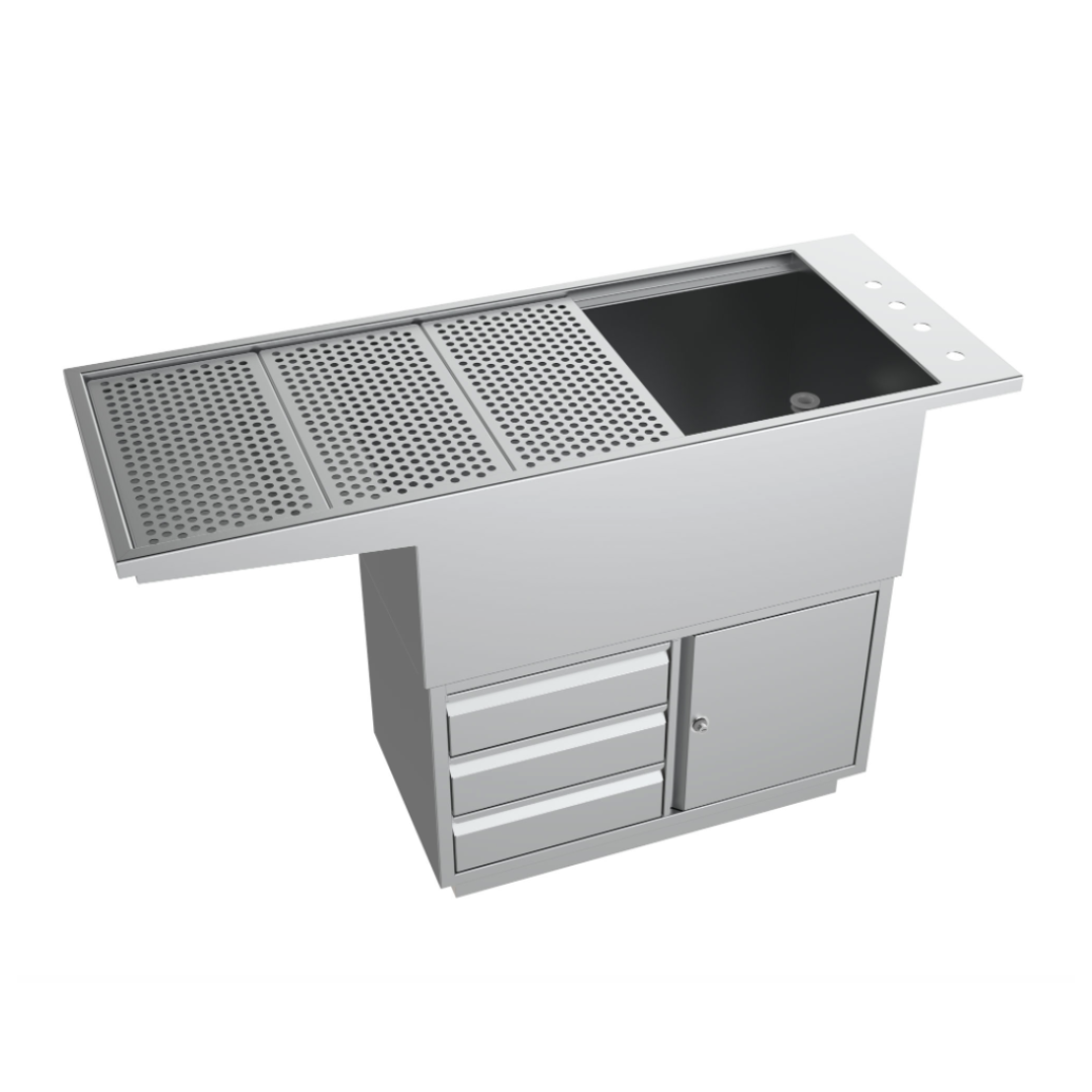 TUB TABLE S/ST 1600MM W/U_CUPBOARD & DRAWERS